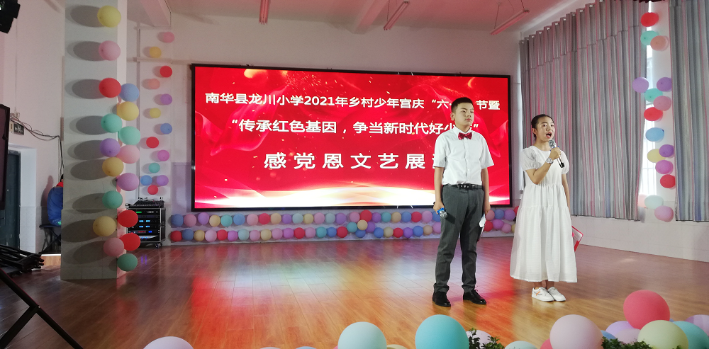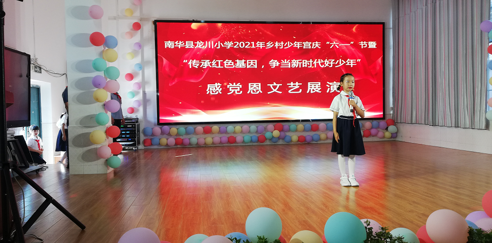 在2021年六一国际儿童节到来之际,为庆祝中国共产党建党100周年,进一步培养学生爱党、爱国情操,引导他们从小听党话、感党恩、跟党走,厚植爱党、爱国、爱社会主义情怀,培养学生社会主义核心价值观,龙川小学举办了“传承红色基因,听党话、感党恩、跟党走”专题文艺展演活动。