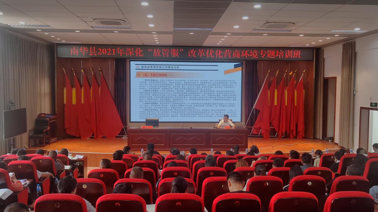 5月27日,南华县举办2021年“放管服”改革优化营商环境专题培训班,各乡镇人民政府、县级有关部门分管领导及工作人员共计110余人参加了培训。培训班诚邀州政务服务局党组成员、副局长杨玉江同志、州政务服务局电子政务规划管理科杨开明同志进行专题辅导。