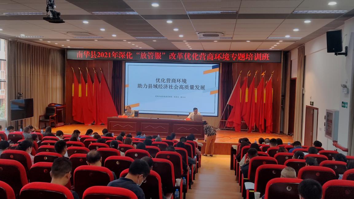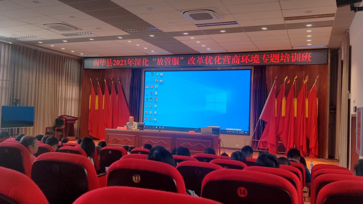 培训班上,杨玉江同志以“优化营商环境 助力县域经济社会高质量发展”为主题,从“营商环境是什么、为什么要大抓营商环境、营商环境要抓什么、如何抓好营商环境、南华县营商环境工作情况分析”5个方面进行了详细地讲解,对南华县营商环境工作的优势、存在的不足和下步工作举措进行全面分析,为南华县进一步深化“放管服”改革、优化营商环境工作启发了思路、指明了方向。