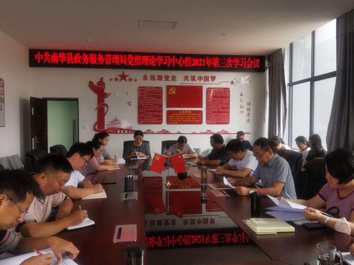 5月26日下午,南华县政务服务管理局党组召开理论学习中心组2021年第三次集中学习会议,会议由局党组书记、局长刘黎华同志主持,局机关全体干部职工参加会议。