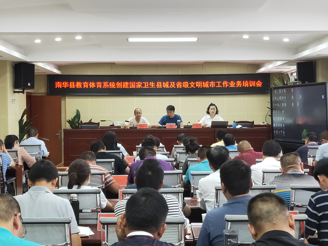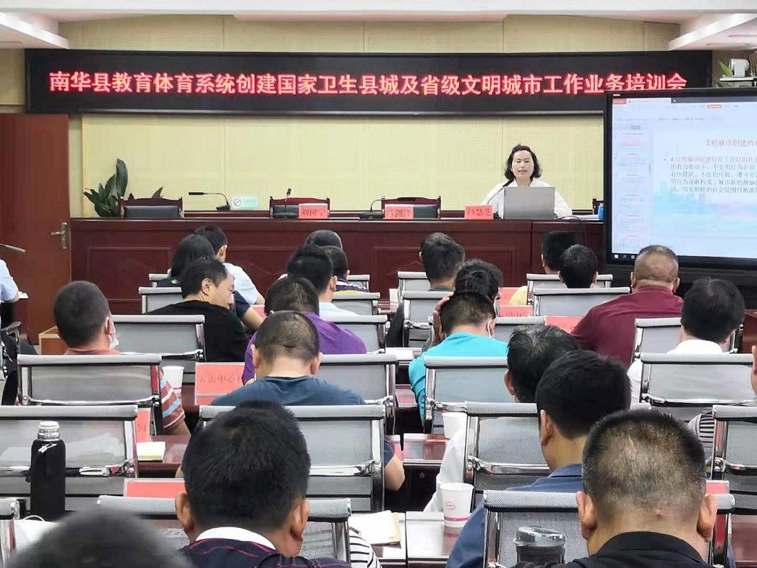 2021年5月24日上午8:00至12:20,南华县教育体育局召开全县教育体育系统创建国家卫生县城、创建省级文明城市工作业务培训会。全县各中小学校长、县城区各幼儿园(含民办)园长、业务负责人近80人参加了会议。