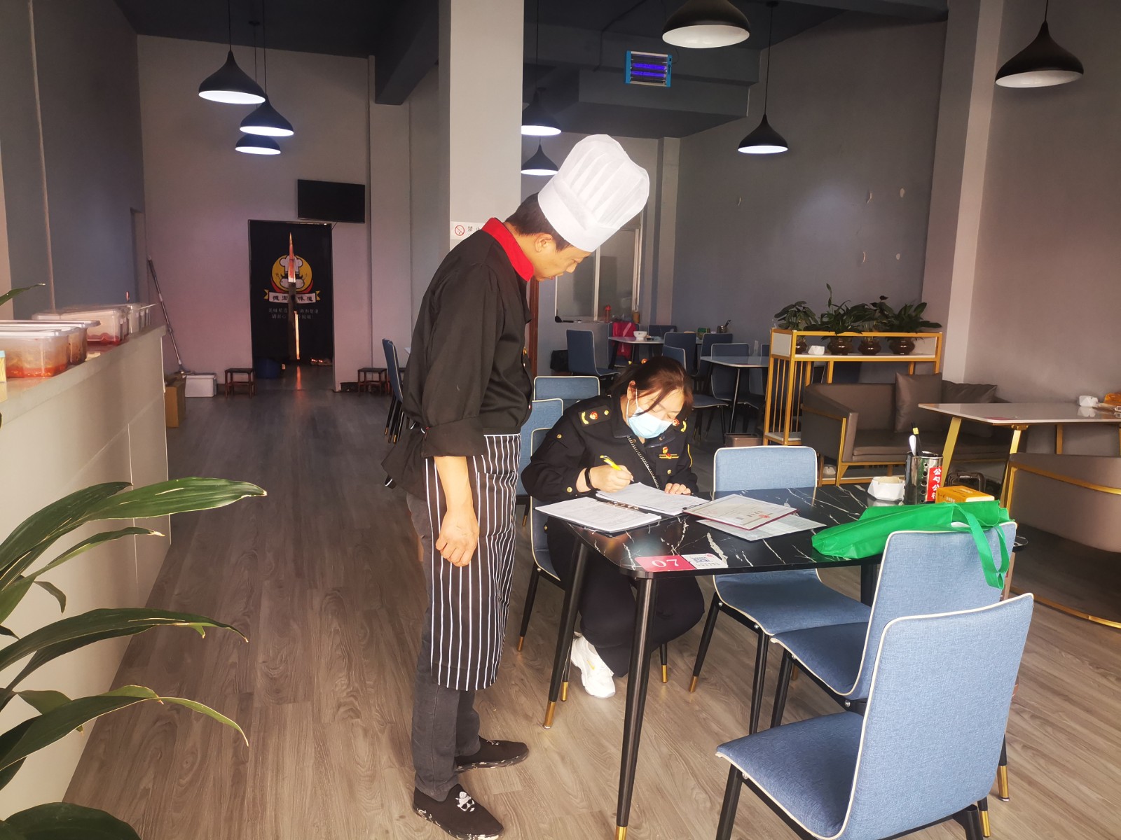检查中,执法人员实地查看餐饮服务经营者是否具有有效的《食品经营许可证》以及从业人员健康证,是否超范围经营;环境卫生及防蝇、防尘、防虫、防鼠“四防”设施等病媒生物防治措施及公勺公筷使用等疫情防控措施是否落实,要求餐饮单位切实抓好“人员管理、设备管理、原料管理、环境卫生、制度落实”五个维度,严格落实食品安全主体责任,切实降低食品安全风险。