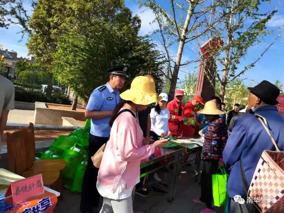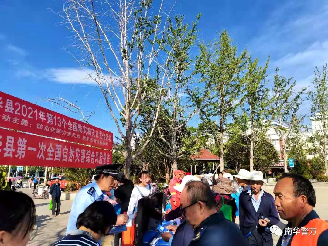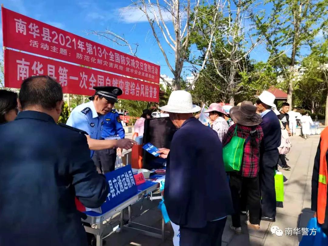 5月12日,全县2021年全国防灾减灾日宣传活动在龙泉广场举行,南华县公安局借机对群众开展反电诈宣传。