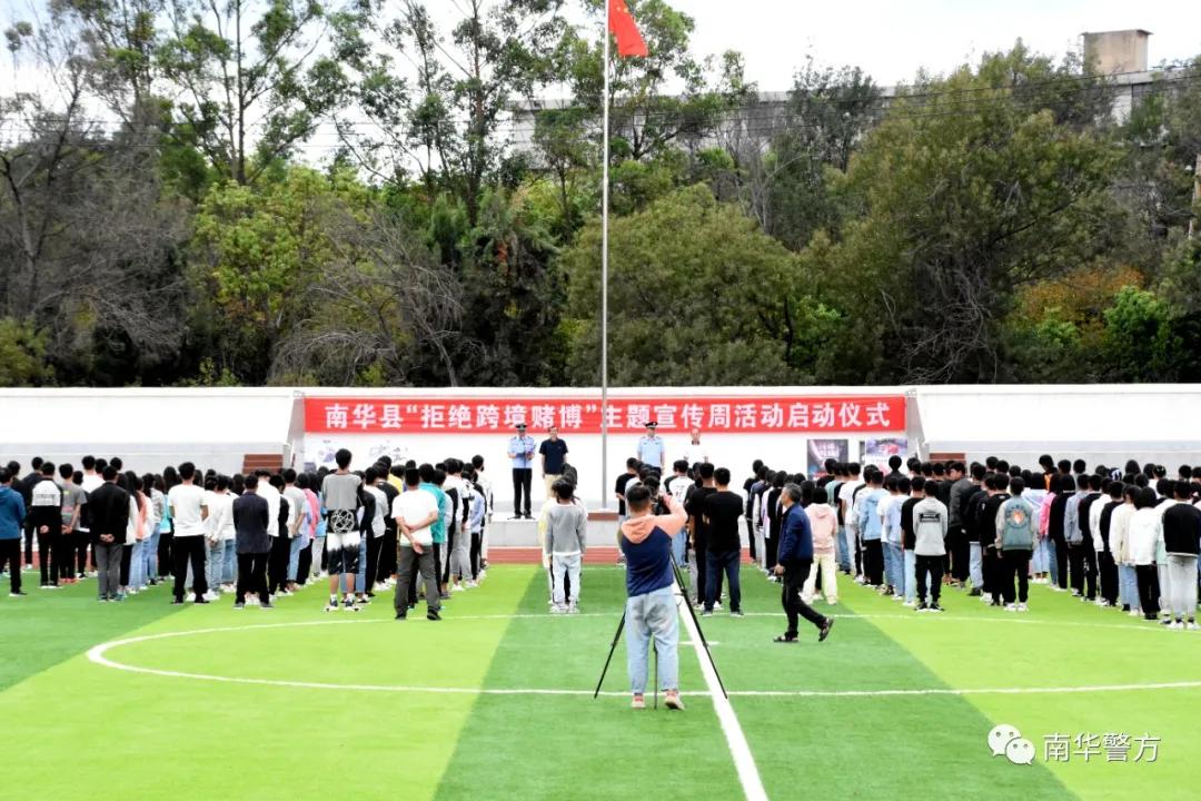 5月7日下午,南华县“拒绝跨境赌博”主题宣传周活动启动仪式在县职业高级中学举行。县公安局党委委员、副局长肖正云主持启动仪式,县公安局民警代表、志愿者、职业中学师生共计200余人参加了活动。