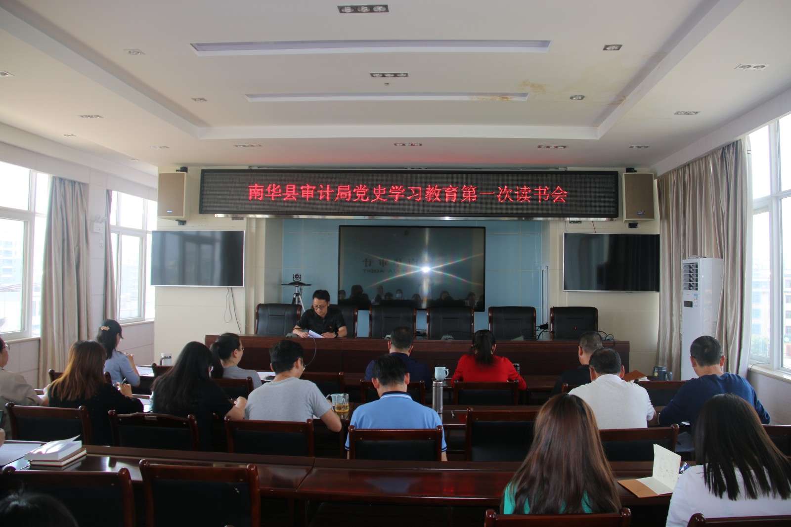 贯彻中央、省、州、县关于党史学习教育的安排部署,4月23日,在世界第26个读书日来临之际,南华县审计局组织开展第一次党史学习教育专题读书活动,此次活动与局党支部4月主题党日活动一并进行,全局干部职工参加了活动。