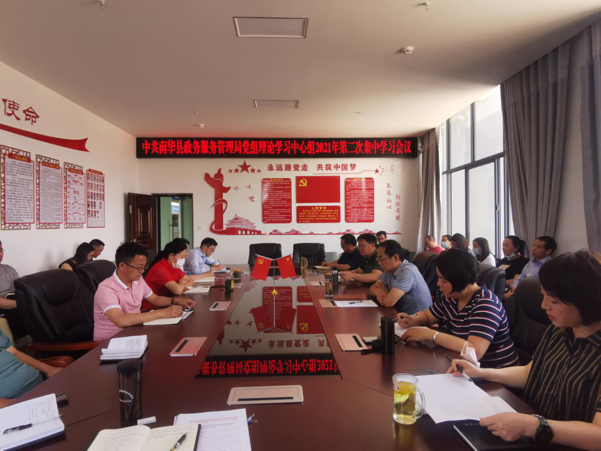 4月25日下午,南华县政务服务管理局党组召开理论学习中心组2021年第二次集中学习会议,局党组书记、局长刘黎华同志主持会议并讲话。会议传达学习了习近平总书记在党史学习教育动员大会上的重要讲话和中央、省、州、县纪委全会精神,部分党组成员和干部职工围绕学习主题,结合工作实际作了专题发言。