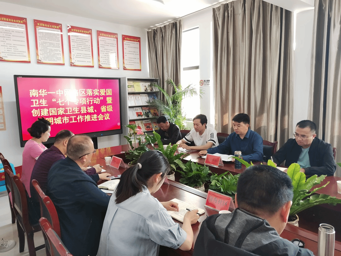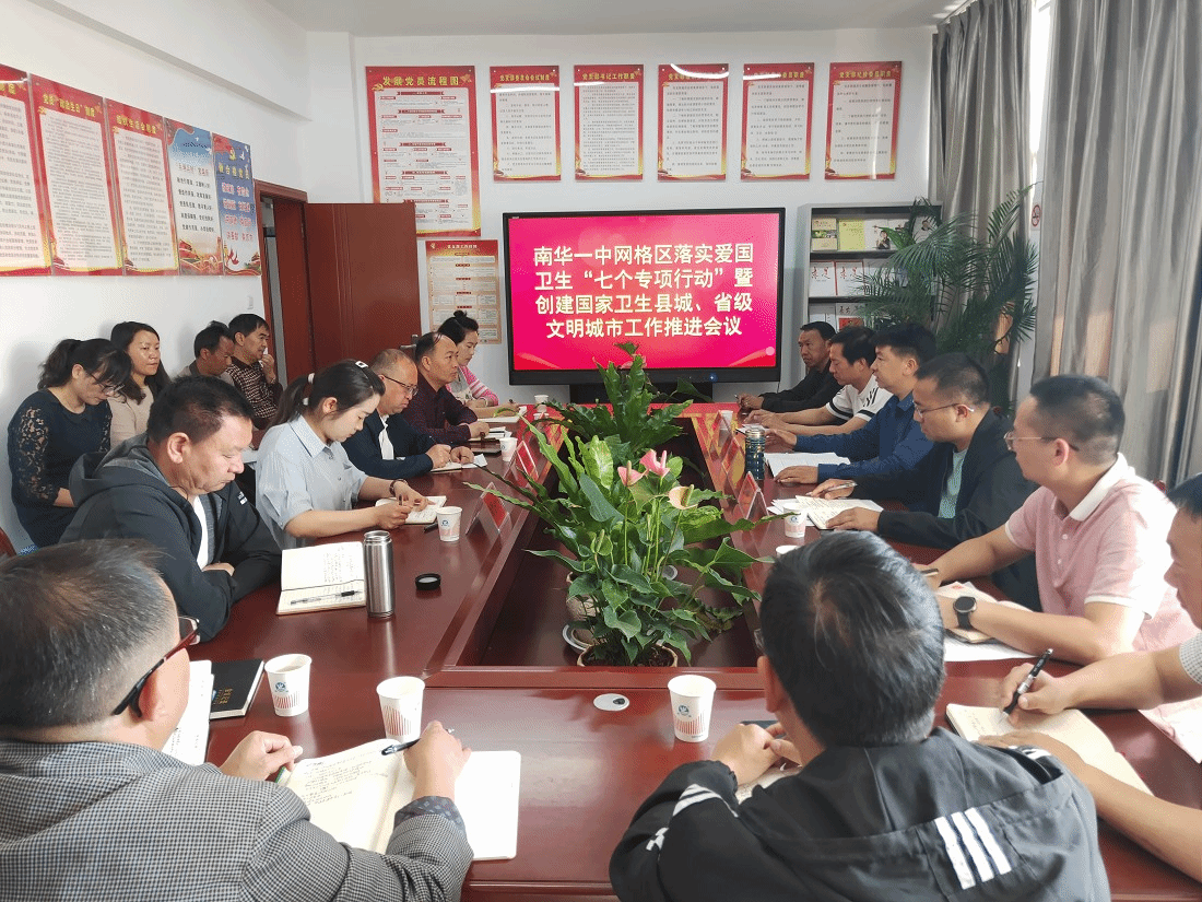 为全面贯彻落实省、州、县关于推进爱国卫生“7个专项行动”及创建省级文明城市,落实“街长制”网格化包保责任的决策部署,进一步落实爱国卫生专项行动及创建国家卫生城市、省级文明城市工作任务,形成规范化、制度化和常态化的“街长制”网格化包保管理模式,切实加强对南华一中网格区网格化包保工作的组织领导和工作督查,4月23日上午8点,南华一中网格区在县教育体育局六楼会议室召开落实爱国卫生“7个专项行动”及创建省级文明城市工作推进会议。