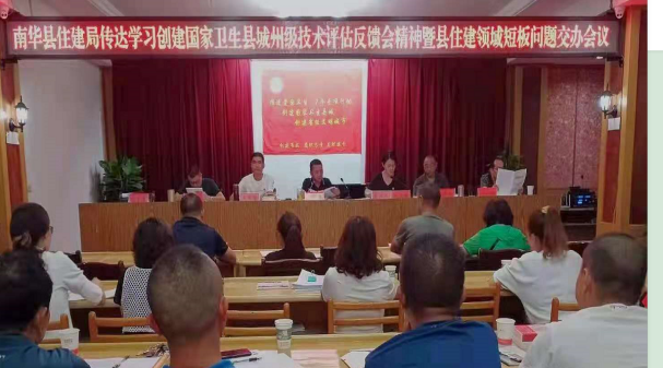 7月7日晚上8:30分,县住建局召开会议,传达学习创建国家卫生县城州级技术评估反馈会会议精神,并对反馈存在问题整改作研究部署。局领导班子、全体党员干部职工、相关企业负责人共90余人参加会议。
