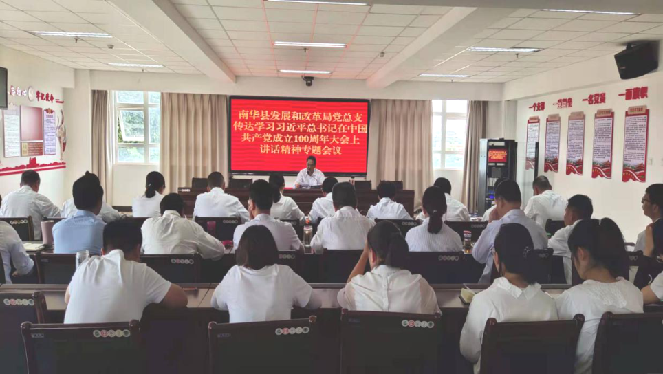 7月2日上午,南华县发展和改革局党总支召开党员大会,专题学习习近平总书记在庆祝中国共产党成立100周年大会上的重要讲话。