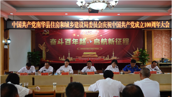 为热烈庆祝中国共产党成立100周年,进一步引导广大党员干部重温党的光辉历史,讴歌党的丰功伟绩,继承和发扬党的优良传统,大力营造“党的盛典、人民的节日”浓厚氛围, 7月1日,县住建局党委举行庆祝中国共产党成立100周年大会。局领导班子成员,局属全体党员、全体干部职工共95人参加了会议。