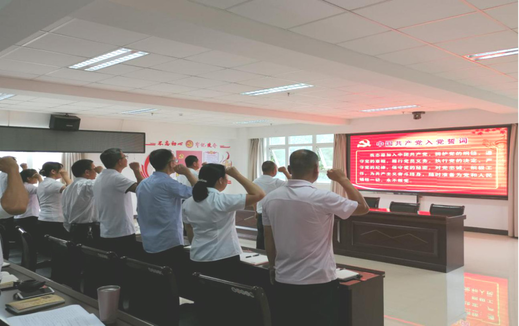 会上,全体党员奏唱了中华人民共和国国歌,重温了入党誓词,局党总支书记杨洪从“新民主主义革命时期、社会主义革命和建设时期、改革开放和社会主义现代化建设新时期、中国特色社会主义进入新时代”四个历史时期,结合当前党史学习教育中自身学习党史、新中国史、改革开放史和社会主义发展史的体会与思考,与全体党员重温了从中国共产党成立至党的十八大以来,党矢志践行初心使命和团结带领人民开辟伟大道路、建立伟大功业的百年历史。