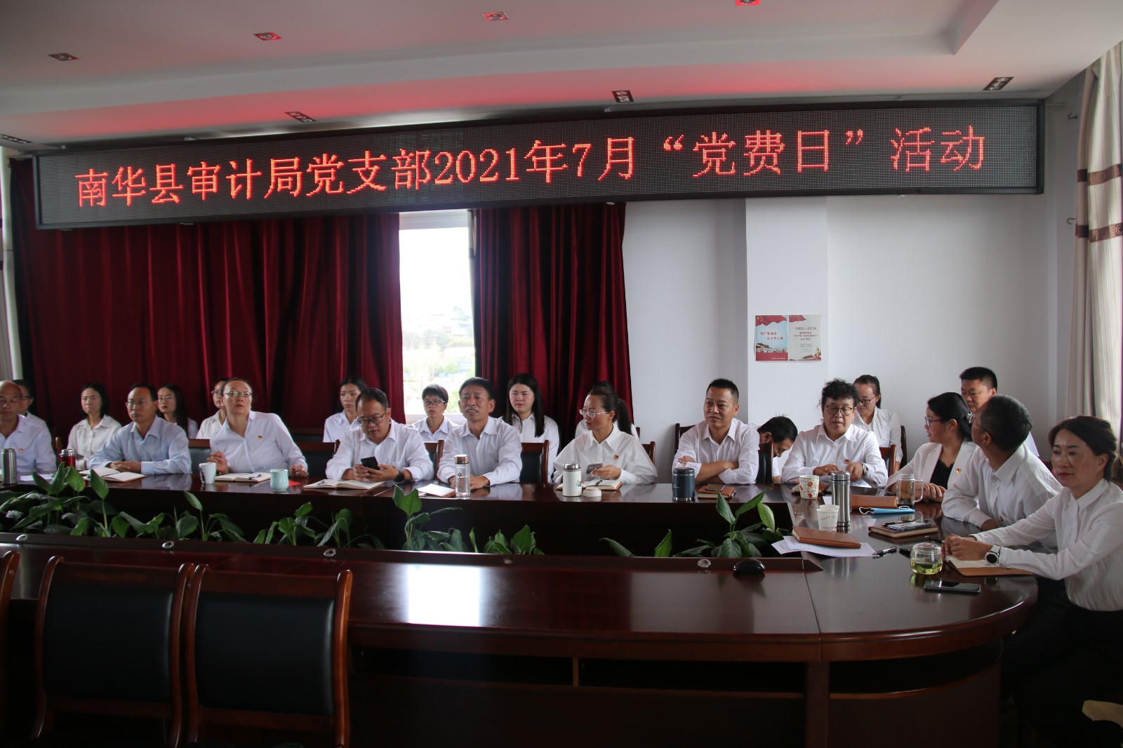 7月1日上午,庆祝中国共产党成立100周年大会在北京天安门广场隆重举行。中共中央总书记、国家主席、中央军委主席习近平同志发表重要讲话。南华县审计局组织局机关全体干部职工在5楼小会议室集中观看大会现场直播盛况。