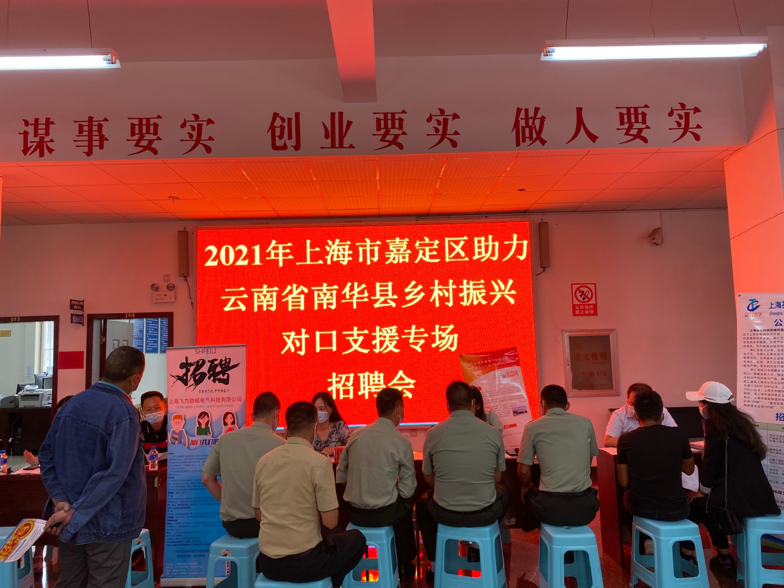 为持续做好东西部劳务协作和对口支援就业帮扶工作,进一步加强嘉定区与南华县劳务协作,巩固拓展脱贫攻坚成果与推进乡村振兴有效衔接。更好地促进城乡劳动者特别是有就业意愿的农村劳动力、脱贫劳动力、易地扶贫搬迁劳动力、应往届高校毕业生、退役士兵等重点就业帮扶对象实现就业,满足各类用人单位用工需求。7月1日上午,南华县在县人社局举办2021年上海市嘉定区助力南华县乡村振兴对口支援转移就业专场招聘会。