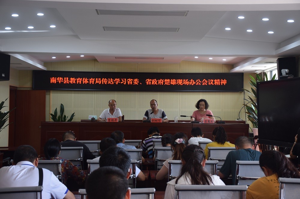6月25日,南华县教育体育局组织专题学习会议,传达学习省委省政府楚雄现场办公会精神,县教育体育局干部职工共计64人参加会议。
