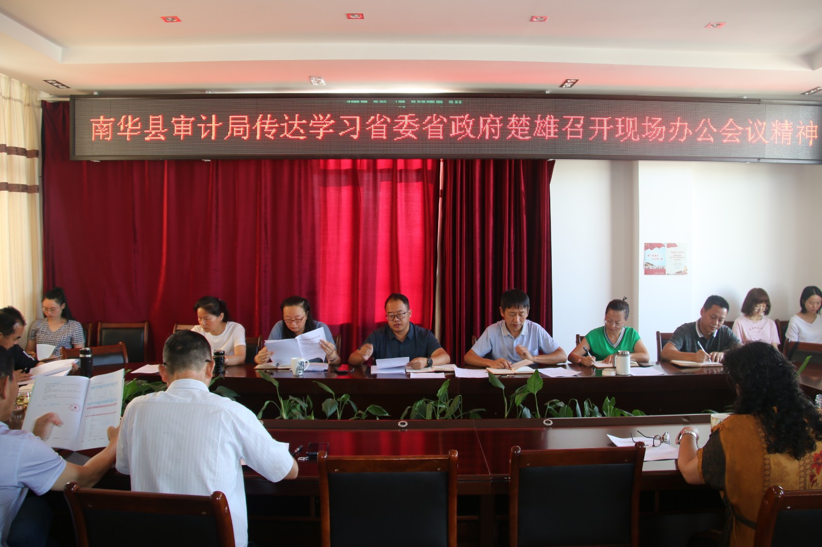 6月24日上午,南华县审计局召开全体干部职工会议传达学习省委省政府楚雄现场办公会会议精神。会议对省委省政府楚雄现场办公会会议内容要求进行了认真组织传达学习,并要求全体领导干部迅速抓好贯彻落实。一是要充分认识省委省政府楚雄现场办公会的重要意义,带头学习宣传,深刻领会精神实质;二是把学习宣传贯彻省委省政府楚雄现场办公会会议精神作为当前重要政治任务,牢记“楚雄要努力建设成为滇中崛起增长极、现代农业示范区、民族团结进步示范区”三个目标定位,抓好工作落实;三是要把学习省委省政府楚雄现场办公会议精神与推进审计工作紧密结合起来,紧紧围绕“三个目标”定位,强化审计监督,确保国家财政资金科学、有效、安全运行,为经济社会发展做出应有的审计贡献。