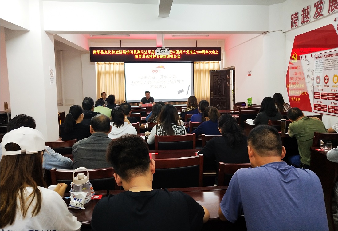 8月23日,南华县文化和旅游局召开学习贯彻习近平总书记在庆祝中国共产党成立100周年大会上重要讲话精神专题宣讲报告会。