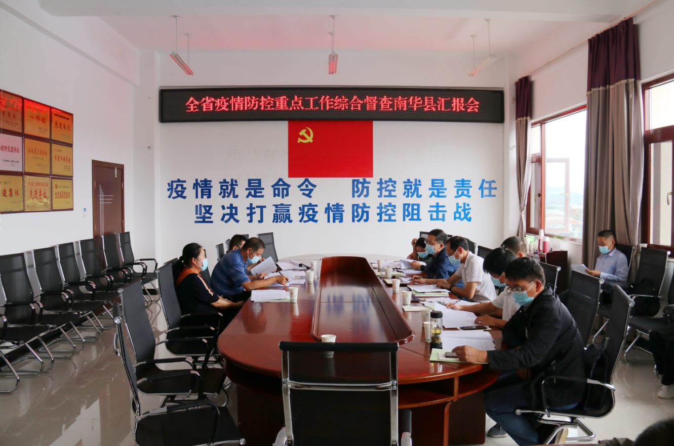 8月27日,云南省工业和信息化厅二级巡视员、省疫情防控重点工作综合督查组第三组组长罗志业一行对南华县新冠肺炎疫情防控工作进行综合督查,州人民政府副州长杨虹陪同督查,县委副书记、县人民政府县长陈如军对疫情防控工作进行汇报。