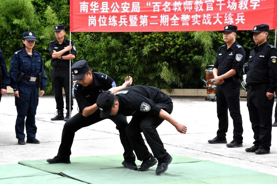 9月14日,南华县公安局依照既定方案,由本局省级教官彭适和李晓龙,就抓捕控制实战技能、处置醉酒警情安全理念等,在单位内部,组织特警大队和龙川派出所80余名民辅警,开展小范围、点对点、现场学的实战练兵活动。由此,拉开了全局“百名教师教官千场教学”岗位练兵暨第二轮全警实战大练兵序幕。
