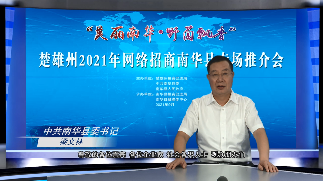 为深入贯彻落实习近平新时代中国特色社会主义思想,统筹推进新冠肺炎疫情防控常态化和经济社会发展,全面推进招商引资工作在疫情防控期间持续开展。经过精心筹备,2021年9月17日上午9:00,楚雄州2021年网络招商南华县专场推介会准时举行。