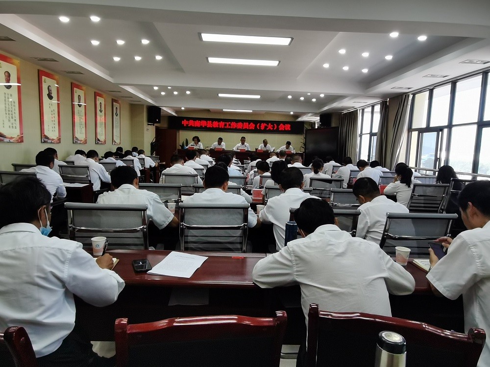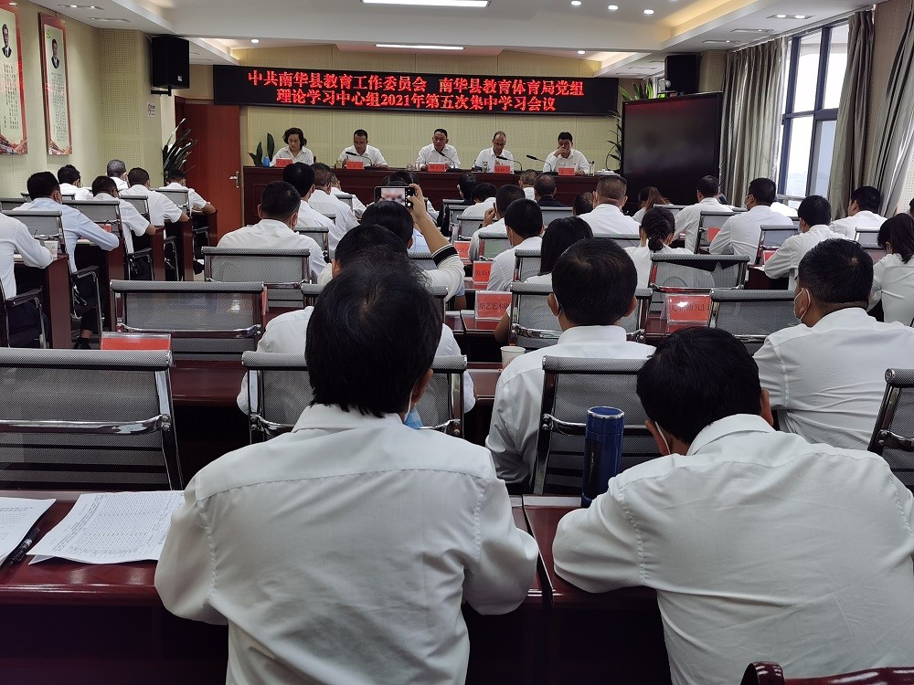 2021年9月11日上午,南华县教育工委、县教育体育局党组召开理论学习中心组2021年第五次集中学习会议及县教育工委(扩大)会议,及时传达学习贯彻县委十四届二次全会精神和县委书记梁文林在南华县2021年教育工作会议暨第37个教师节庆祝大会上的讲话精神。县教育体育局党政领导班子成员、各股室长(负责人)、各学校(幼儿园)书记及校(园)长共计70余人参加会议。