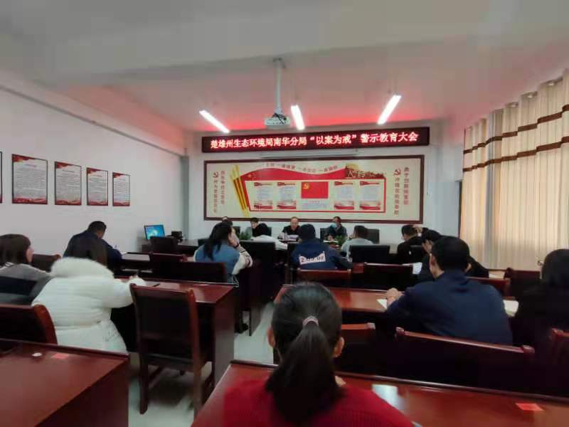 2021年11月12日下午,楚雄州生态环境局南华分局召开“以案为戒”警示教育大会,会议传达学习了11月10日省纪委省监委“以案为戒”警示教育大会精神,11月3日省委第六巡视组向省生态环境厅党组反馈巡视“回头看”情况,以及楚雄州生态环境系统“以案为戒”警示教育大会精神。党组书记、局长李昌同志对全体干部职工提出了要求: