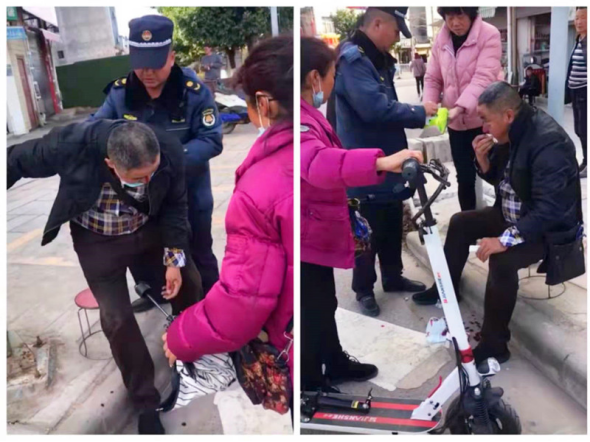 1月6日下午,南华县住建局管执法队员在开展日常巡查工作,途径龙山路烟草公司红绿灯路口时,发现一名男子在骑行轻便电动车过程中摔倒受伤,城管队员立即上前查看,发现男子脸部受伤,鼻子不断流血,城管队员拿出纸巾帮男子擦拭止血,并将男子扶至路边安全地段休息。旁边热心群众见状也纷纷上前帮忙,有的提供凳子、有的提供纸巾。不久,受伤男子妻子赶到现场,便与城管队员一起将男子扶上城管执法车送往医院救治。