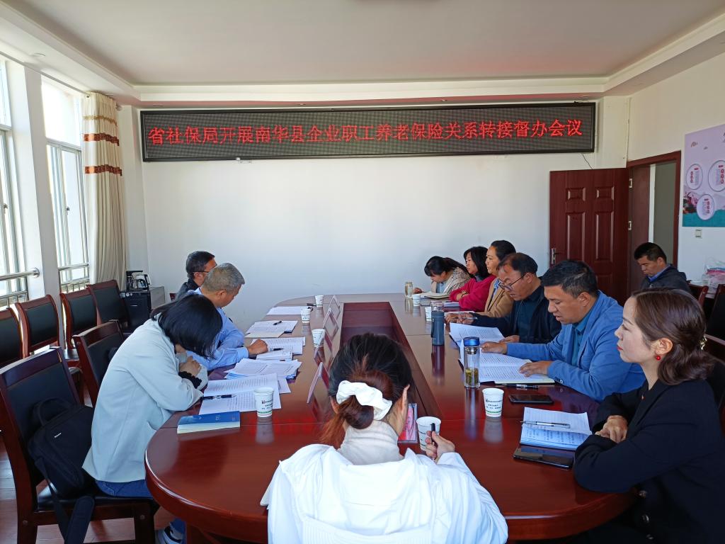 州人社局林智科长结合省社保局工作建议对南华县开展好企业职工养老保险关系转移接续工作提出要求:一要按时限要求办理好转移业务,对于处理不了的及时与州级对接,提交工单;二要抓紧落实历史遗留超期业务,加强与州级、省级对接;三要整合社保经办机构,加强人员配置。