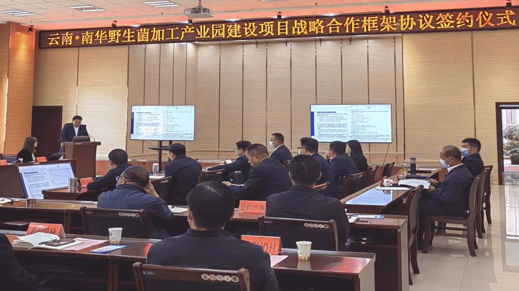 县委书记马特在签约仪式上致辞,向出席签约仪式的各位嘉宾表示热烈欢迎。他指出,云南•南华野生菌加工产业园建设项目是南华2022年乃至“十四五”期间的重点建设项目,也是南华进一步推进一二三产业深度融合发展的重大契机,项目建成后,将为南华巩固全省“一县一业”野生菌示范县成果,建成云南国际野生菌新零售交易中心、全国最大野生菌生产加工基地、世界野生菌保育促繁基地奠定坚实基础。他表示,县委、县人民政府经过充分论证,引进了以昆明国际花卉拍卖交易中心有限公司为牵头方的企业联合体,该联合体协同作战实力突出、资源整合能力优异、项目运营经验丰富,具备高起点、高质量、高标准推进云南•南华野生菌加工产业园“投、融、建、管、营”一体化发展的能力和条件。南华县将始终秉承重商、亲商的理念,致力于营造更加宽松、更加和谐的投资环境,给投资者最有力的支持,为企业提供最优质的服务。他要求,县级相关部门要加强协调、主动服务,全力支持企业加快项目建设进度、加大投资强度、缩短建设工期,力争早日开工、早日建成投入使用,为推动南华经济社会发展作出积极贡献。