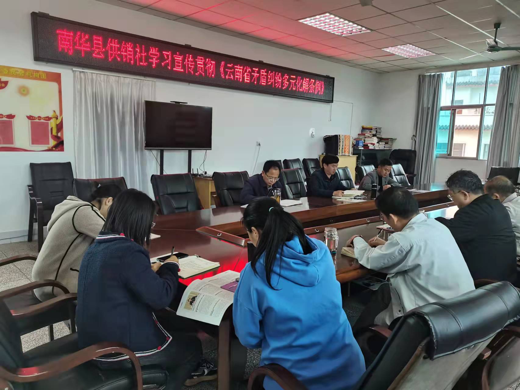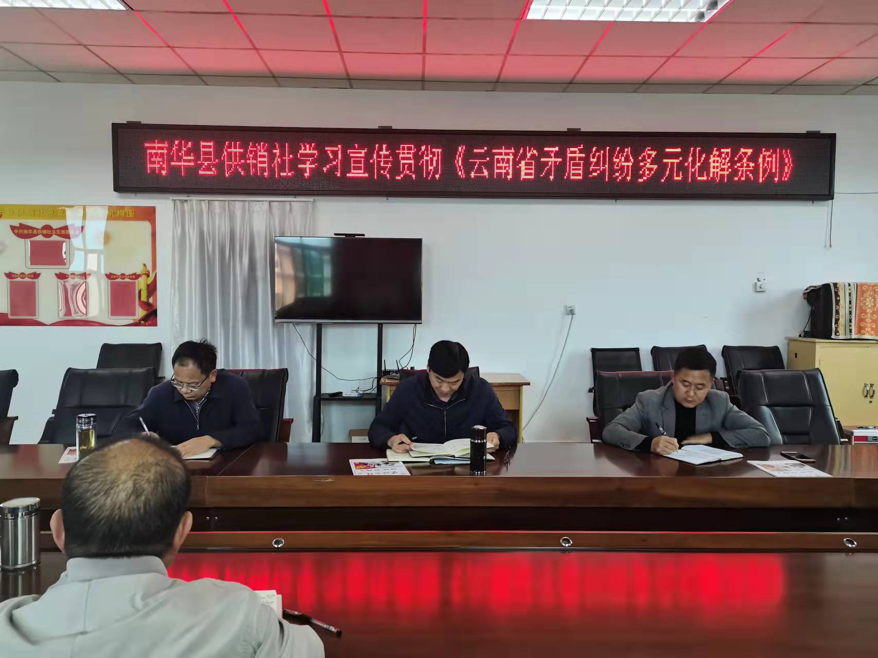 3月28日上午,南华县供销社组织全体干部职工学习《云南省矛盾纠纷多元化解条例》(以下简称《条例》)。