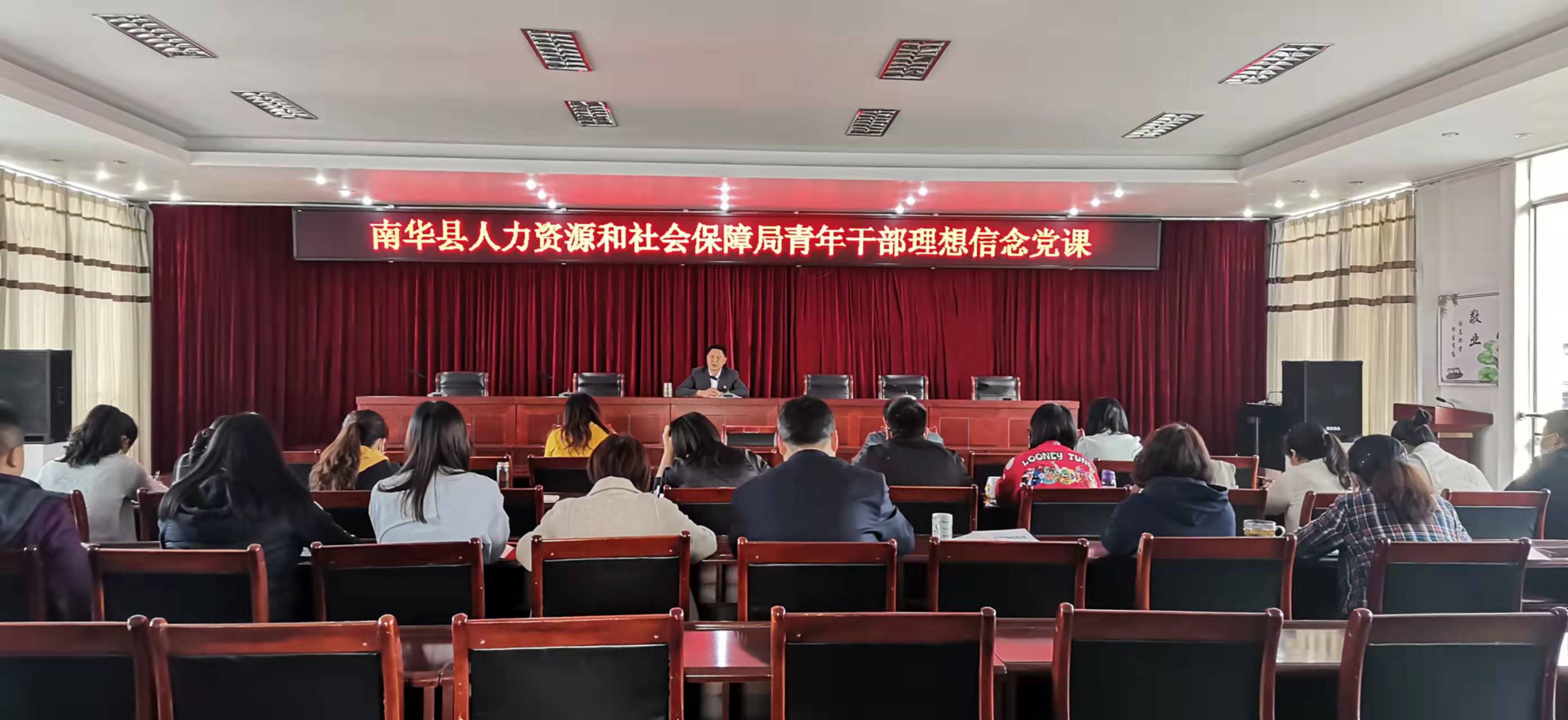 按照南华县年轻干部教育管理监督“ʻ青’廉工程”实施方案工作要求,3月29日上午,县人社局党组书记、局长张问高结合身边鲜活的案例,以《坚定理想信念 奋力谱写人社工作新篇章》为主题给全局青年干部上专题党课。