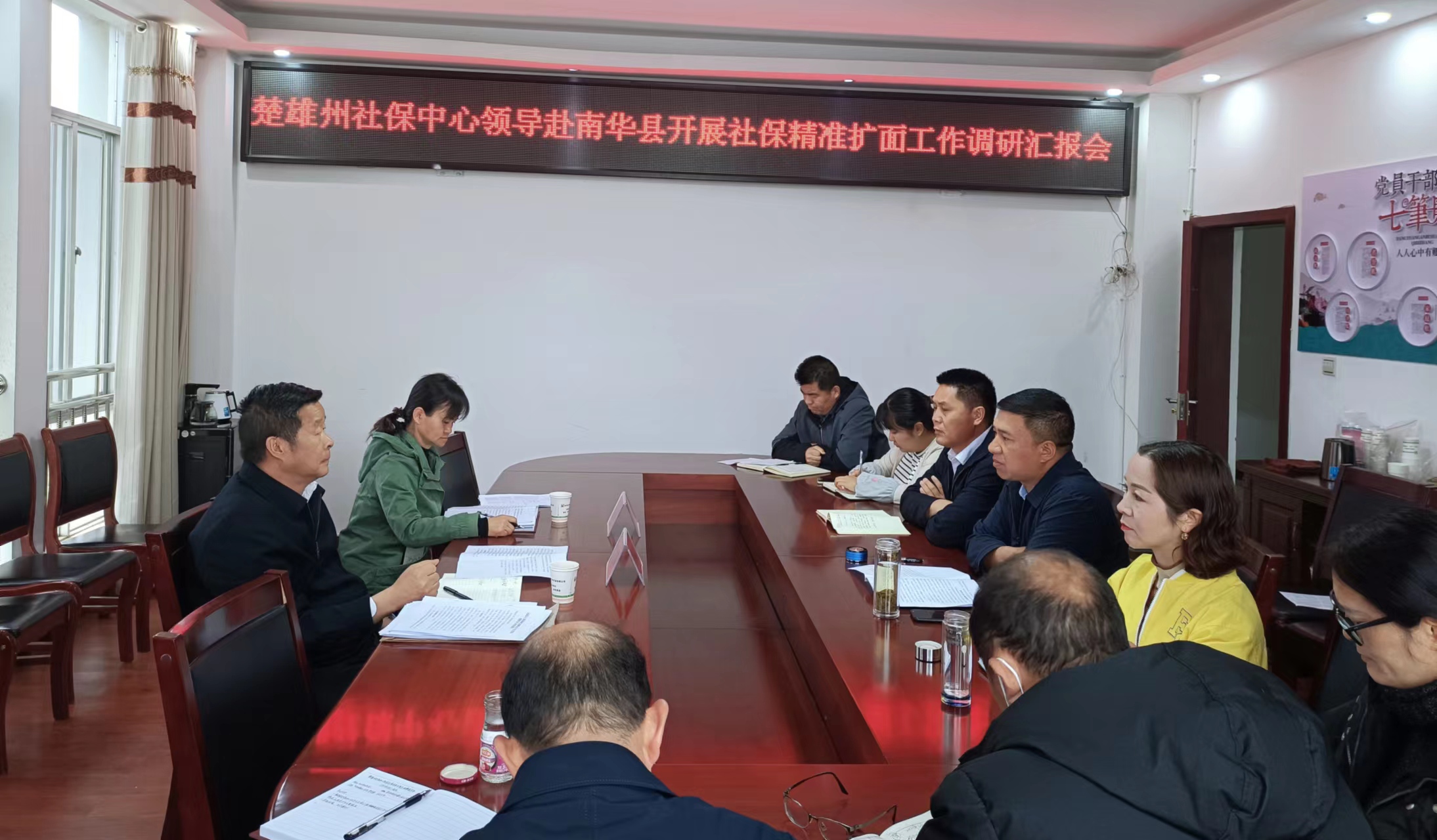 县人社局党组书记、局长张问高,社保中心主任王文海及社保中心各股室负责人及部分业务经办人员参加调研座谈会。(南华县人社局 段兴燕)