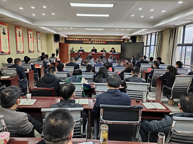 4月6日,南华县教育工委、县教育体育局党组召开理论学习中心组2022年第一次集中学习会议。县教育工委书记、县教育体育局党组书记周正国同志主持会议,局党政领导班子成员、各股室负责人、各党总支(支部)书记及校(园)长共计60余人参加会议。