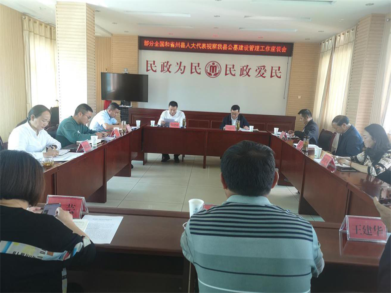 下午,视察组在县民政局四楼会议室召开视察座谈会,听取了县人民政府副县长张建海对全县公墓建设管理情况的汇报,各位人大代表分别作了发言:认为两年多以来在县委、县人民政府的正确领导下,通过全县各级各部门的共同努力,殡葬改革稳步推进,不断深化,完成了千年变革,取得了显著成效,是南华历史上最重要的改革之一,成绩值得肯定。代表们还对公墓建设管理工作提出了很好的意见建议。