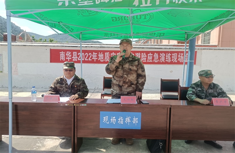 为认真贯彻省、州地质灾害防治工作视频会议精神,全力做好我县2022年汛期地质灾害防治工作,确保人民群众生命财产安全。2022年4月24日下午我县在沙桥镇小古山村委会召开2022年地质灾害防治工作第一次调度会议暨县级防灾应急避险演练。县人民政府副县长毛焕朝、县级相关单位、各乡镇分管领导及有关工作人员和群众120余人全程参加演练活动。