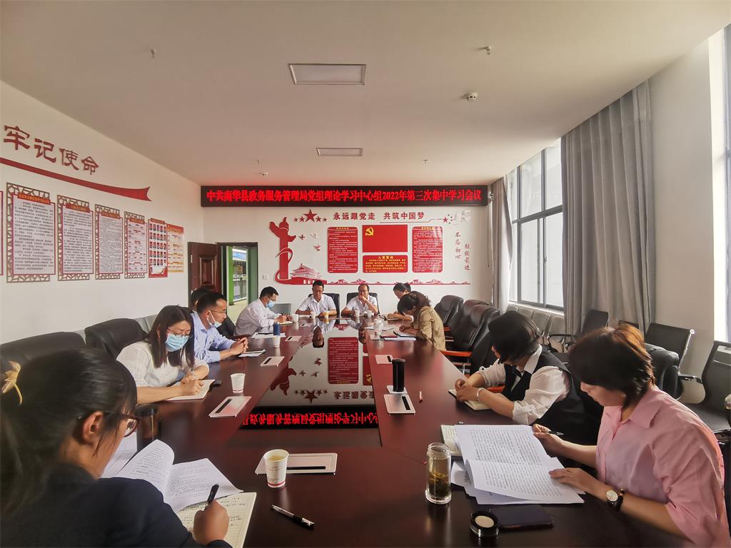 5月9日,县政务服务局党组召开理论学习中心组2022年第三次集中学习研讨会议,会议由党组成员、副局长李秀梅同志主持。