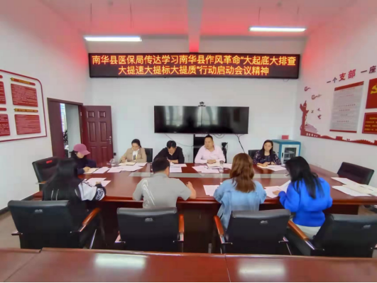 强部署,以上率下带出好作风。每月定期召开1次专题会议传达学习省委、州委、县委作风革命相关会议精神和最新医保政策,让全局干部职工思想统一到上级的要求上来,切实转变作风,坚持形式服从内容,进度服从效果,聚焦现实问题,一切从实际出发,坚决防止和纠正重痕迹轻效果,华而不实等形式主义,加强调查研究,掌握实际情况,吃透上情、摸清下情、把握内情、了解外情,坚持科学研判、明晰原因、合理解决;认真梳理各项业务清单,精简各种审批材料,优化业务流程,简化办事程序,向着问题难点、堵点发力。