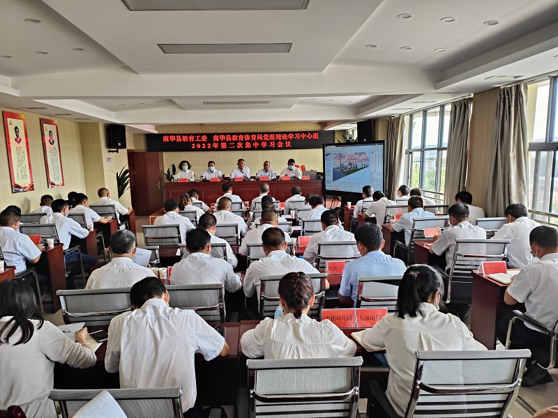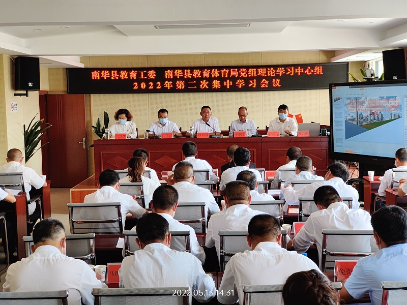 5月13日,南华县教育工委、县教育体育局党组召开理论学习中心组2022年第二次集中学习会议,会议由县教育工委书记、县教育体育局党组书记、局长周正国主持。县教育工委、县教育体育局党政班子成员,局机关各股室负责人、工委办工作人员,各党总支(支部)书记、校(园)长共计60余人参加会议。