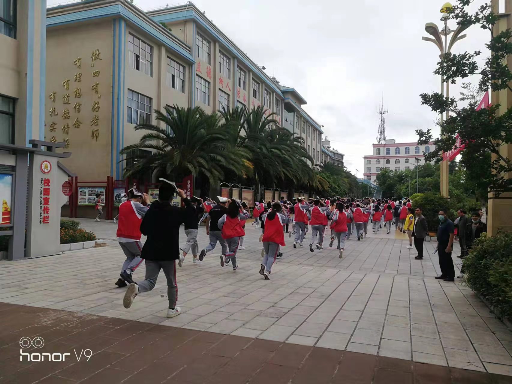 9时15分,随着地震警报响起,全体高三学生在老师的指挥下,双手护头,按照演练方案有序撤离,700余名学生在不到2分钟的时间内全部到达学校指定的紧急疏散点有序集合。演练过程中,同学们行动迅速、不慌不乱、有序疏散,演练全过程没有出现任何问题,演练活动达到了预期目的。