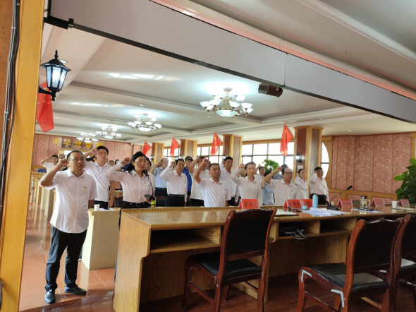 【重温入党誓词】在庆祝中国共产党成立101周年大会上,与会党员面向鲜红的党旗,以铿锵有力的声音重温入党誓词,回顾入党宣誓时的庄严承诺和坚定决心,进一步强化了党性意识,坚定了为党的事业奋斗的信念。