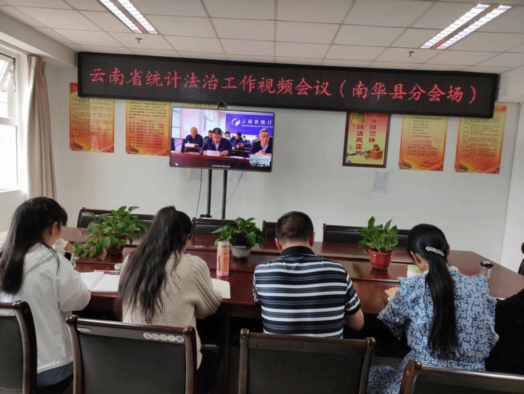为深入学习贯彻习近平法治思想,贯彻落实全国统计法治工作视频会议精神,5月12日下午,省统计局召开全省统计法治工作视频会议,南华县统计局全体干部参加会议。