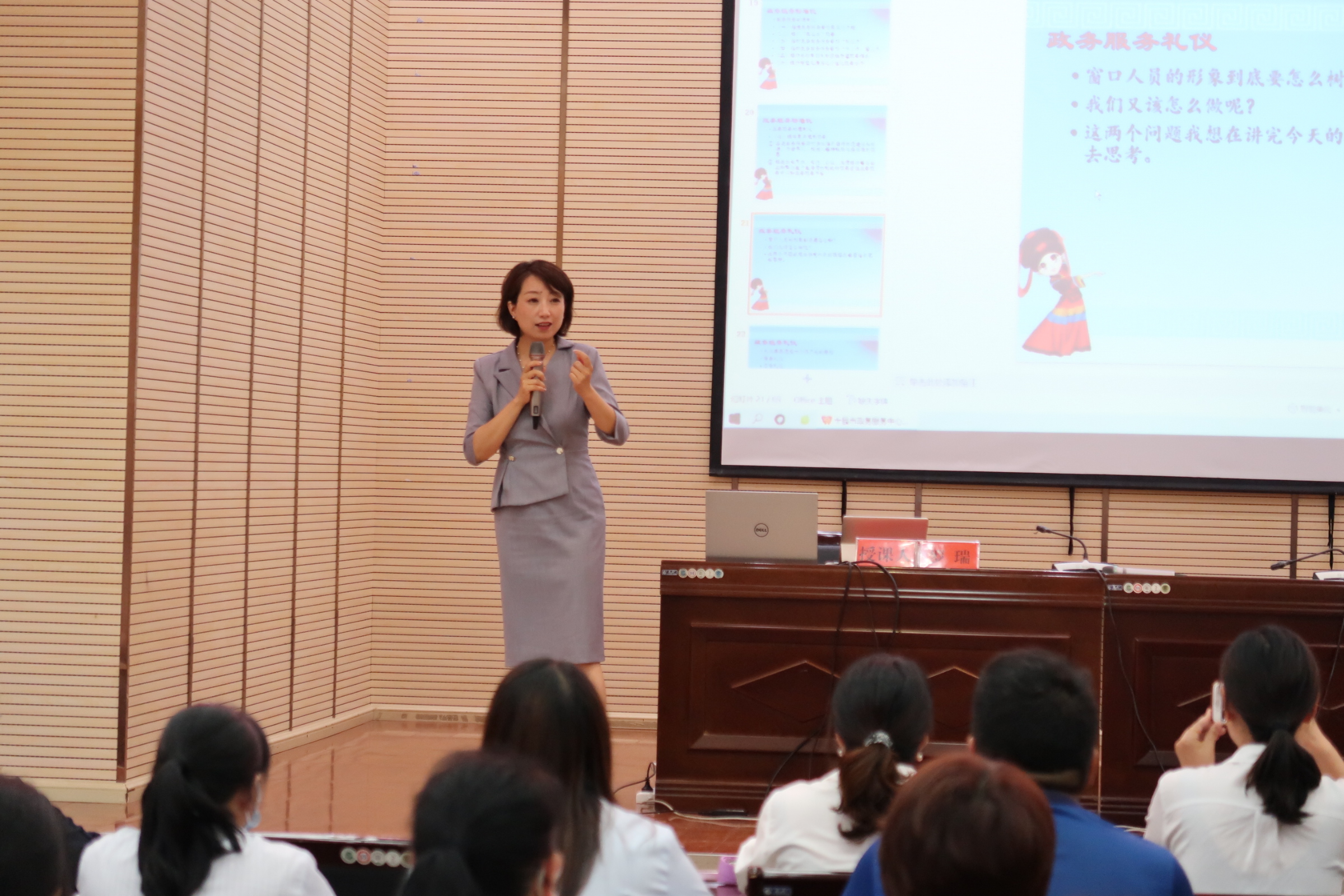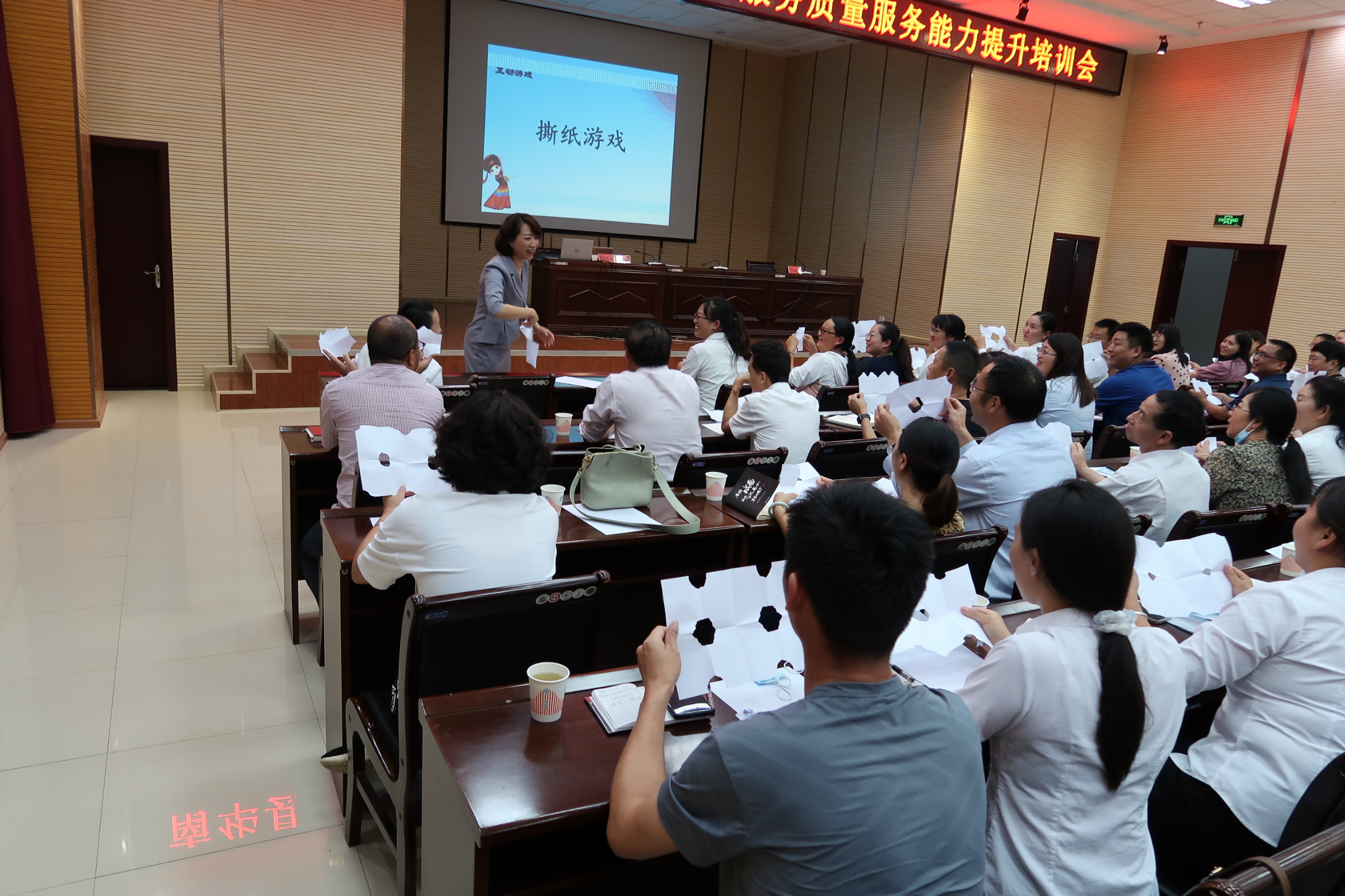 此次培训邀请到州政务服务局政务服务管理科科长罗瑞进行授课,围绕政务服务礼仪,具体从窗口工作人员的形象礼仪、行为语言、沟通技巧等方面,以现场讲解、具体示范、互动游戏引导的方式,在严肃而又轻松愉快的氛围下圆满完成。通过开展培训,参训人员学有所获,纷纷表示下步工作中将不断提升服务质量和管理效能,优化服务水平,为企业和群众提供优质高效服务,为全县经济社会发展创造良好的政务服务环境。