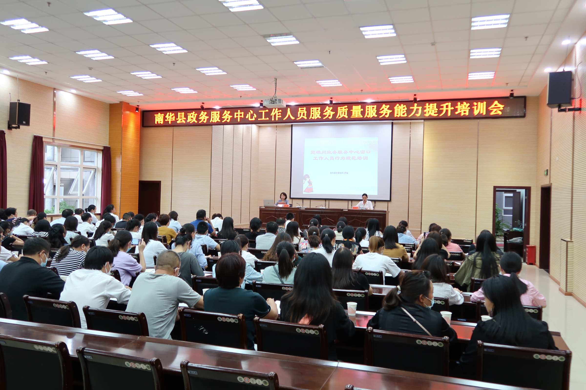 为进一步规范政务服务中心窗口工作,提升政务服务水平,提高服务质量,规范服务行为,营造舒适的办事环境,方便企业和群众办事,提高政务服务满意度。7月29日,南华县举行县政务服务中心工作人员服务质量服务能力提升培训会议,进驻县政务服务中心所有窗口工作人员、选派到一线服务窗口实践锻炼人员、县政务服务局全体干部职工参加了培训。