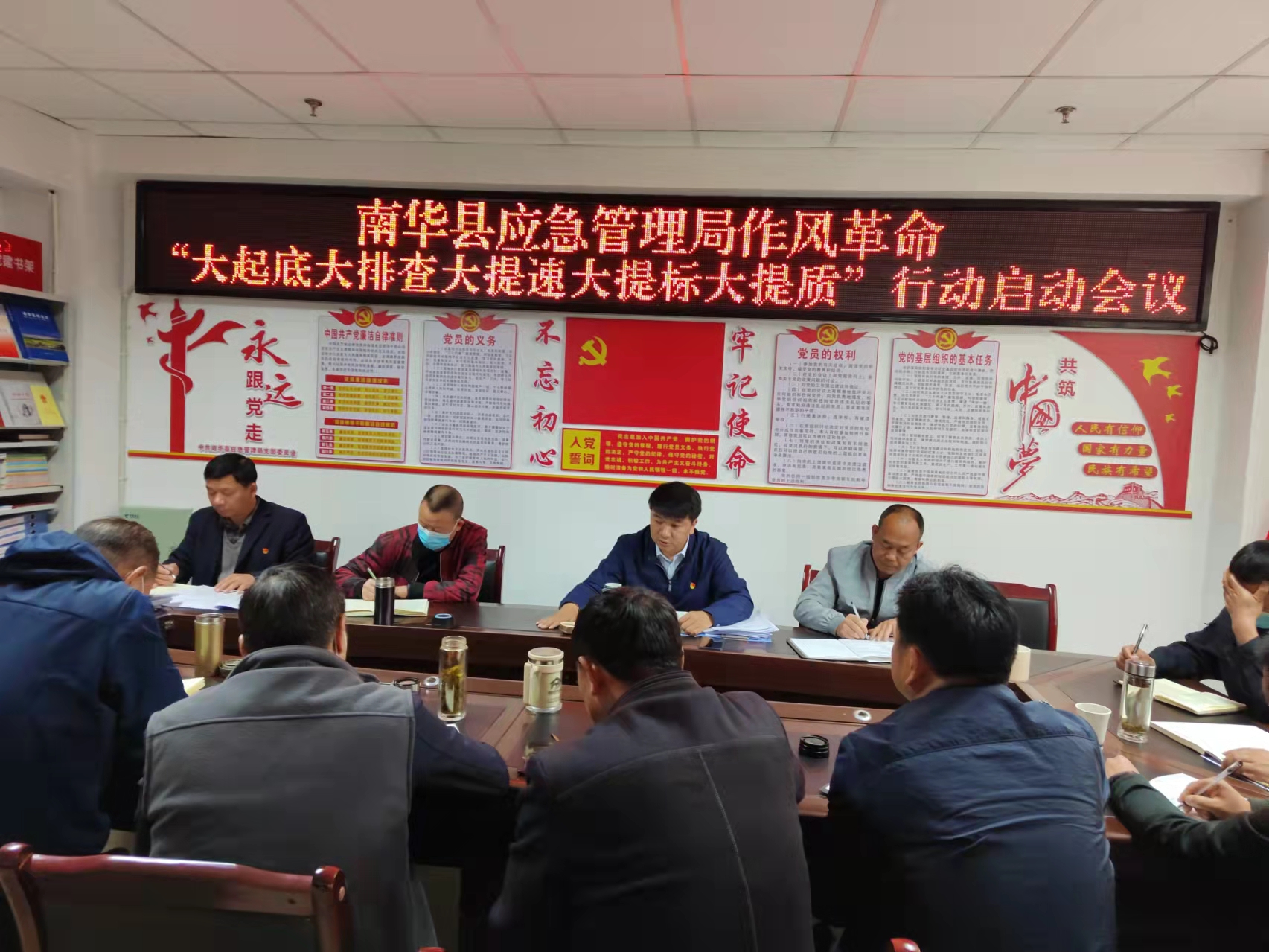 坚持党建引领应急管理工作,将党建工作与应急管理工作深度融合,凝聚起推动应急管理事业发展的强大合力。3月29日,局党委召开局机关作风革命“大起底大排查大提速大提标大提质”行动启动会议,结合工作实际,做了部署;及时制定实施方案,形成领导班子、股室和个人问题整改清单,强化问题整改;党委会议专题研究,强化跟踪问效,实行闭环管理,为开展作风革命提供了坚强的政治保证。