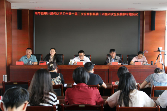 8月15日,南华县审计局召全体干部职工会议,专题传达学习州委十届三次全会和县委十四届四次全会精神,并就结合审计工作抓好会议精神贯彻落实进行安排。