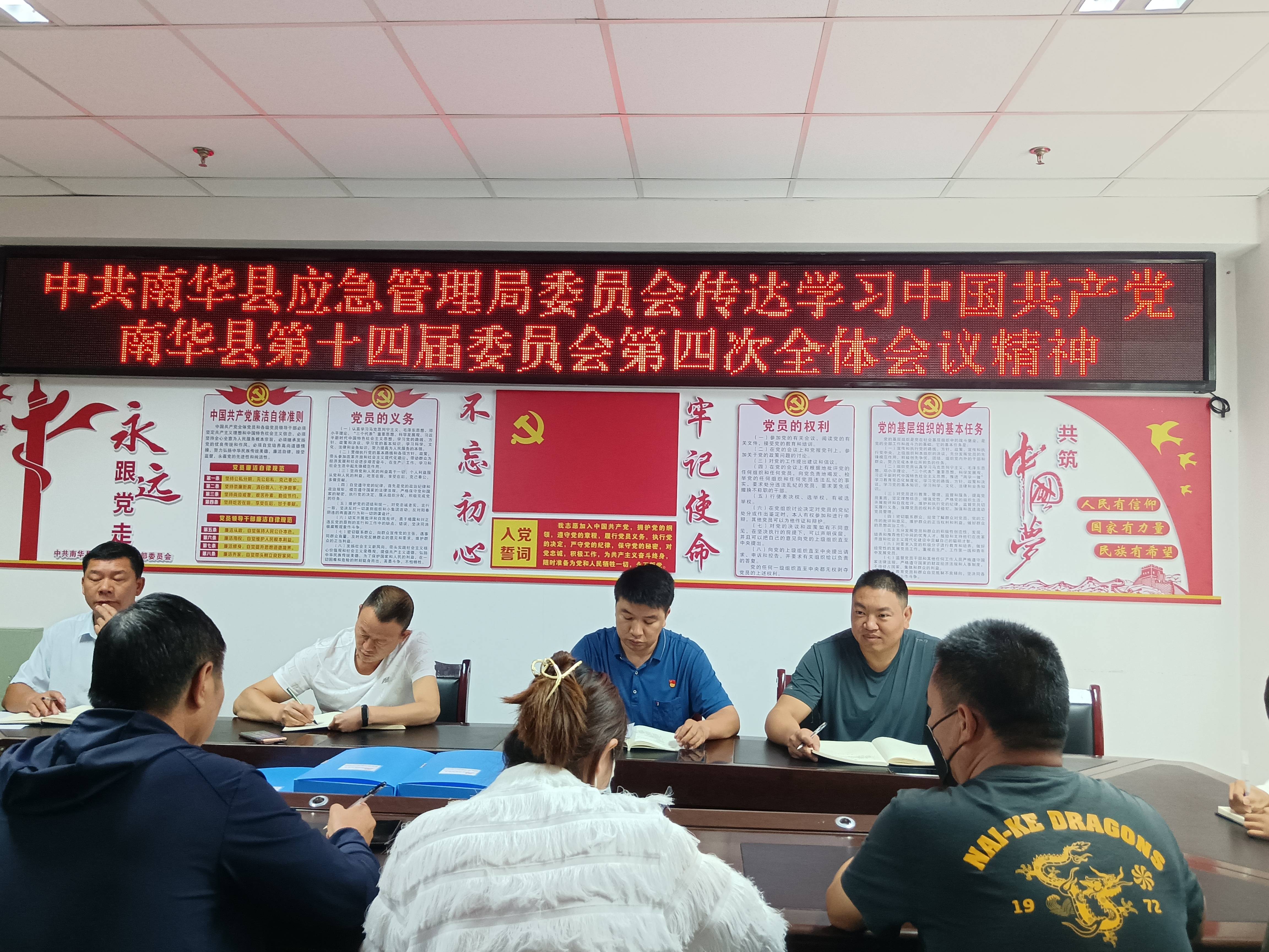 8月12日,南华县应急管理局召开了干部职工会议,全面传达学习中国共产党南华县第十四届委员会第四次全体会议精神。