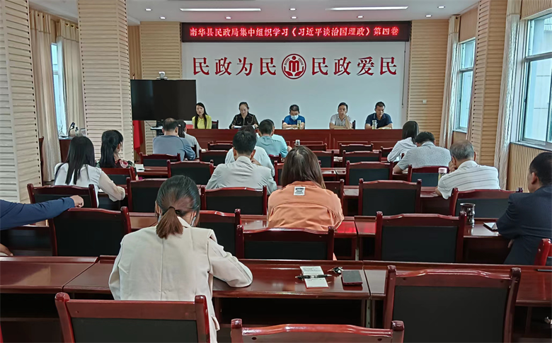 2022年8月29日,县民政局按照《县委宣传部县委组织部关于认真组织学习<习近平谈治国理政>第四卷的通知》要求,在局党组书记、局长段洪俊同志的带领下,认真组织全体干部职工集中学习《习近平谈治国理政》第四卷。