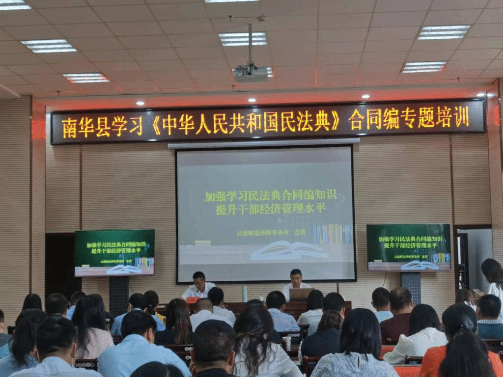 《中华人民共和国民法典》合同编是各级行政部门(单位)在经济管理活动中经常运用的法律规范。为持续提升全县干部法治素养,有效防范合同风险,8月31日,县委依法治县办邀请中华全国律师协会理事、云南省律师协会副会长、楚雄州律师协会会长、云南精益律师事务所主任、县人民政府法律顾问连勇开展了题为《加强学习民法典合同编知识 提升干部经济管理水平》专题讲座。