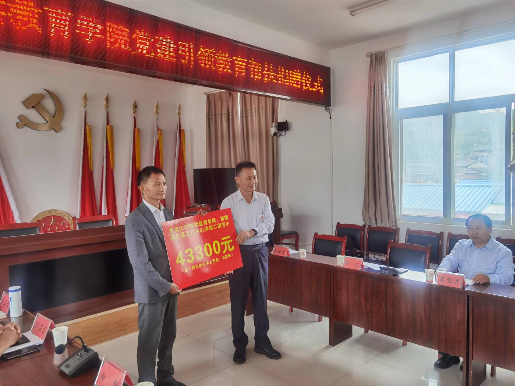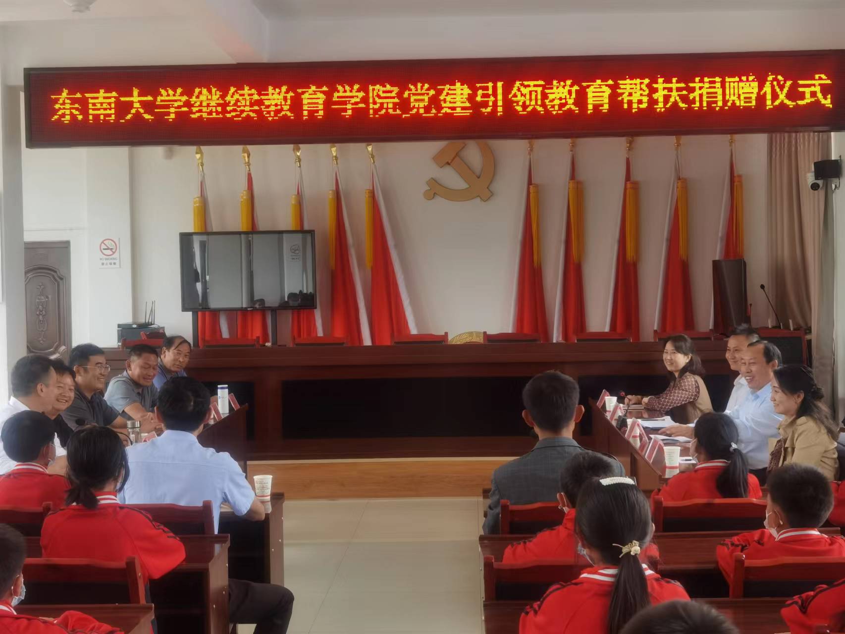 为进一步开展党支部共建、做好干部教育培训,助力乡村教育发展和乡村振兴,9月6日,东南大学继续教育学院党委书记徐悦一行赴龙川中心学校二街完小开展党建引领教育帮扶活动,县人民政府副县长曲栩、县教育体育局局长周正国、县乡村振兴局局长祝应兴、龙川中心学校校长、二街社区书记、二街完小部分师生参加帮扶活动。二街社区驻村工作队第一书记、队长吴明全主持活动,并汇报东南大学继续教育学院党建引领教育帮扶工作情况。