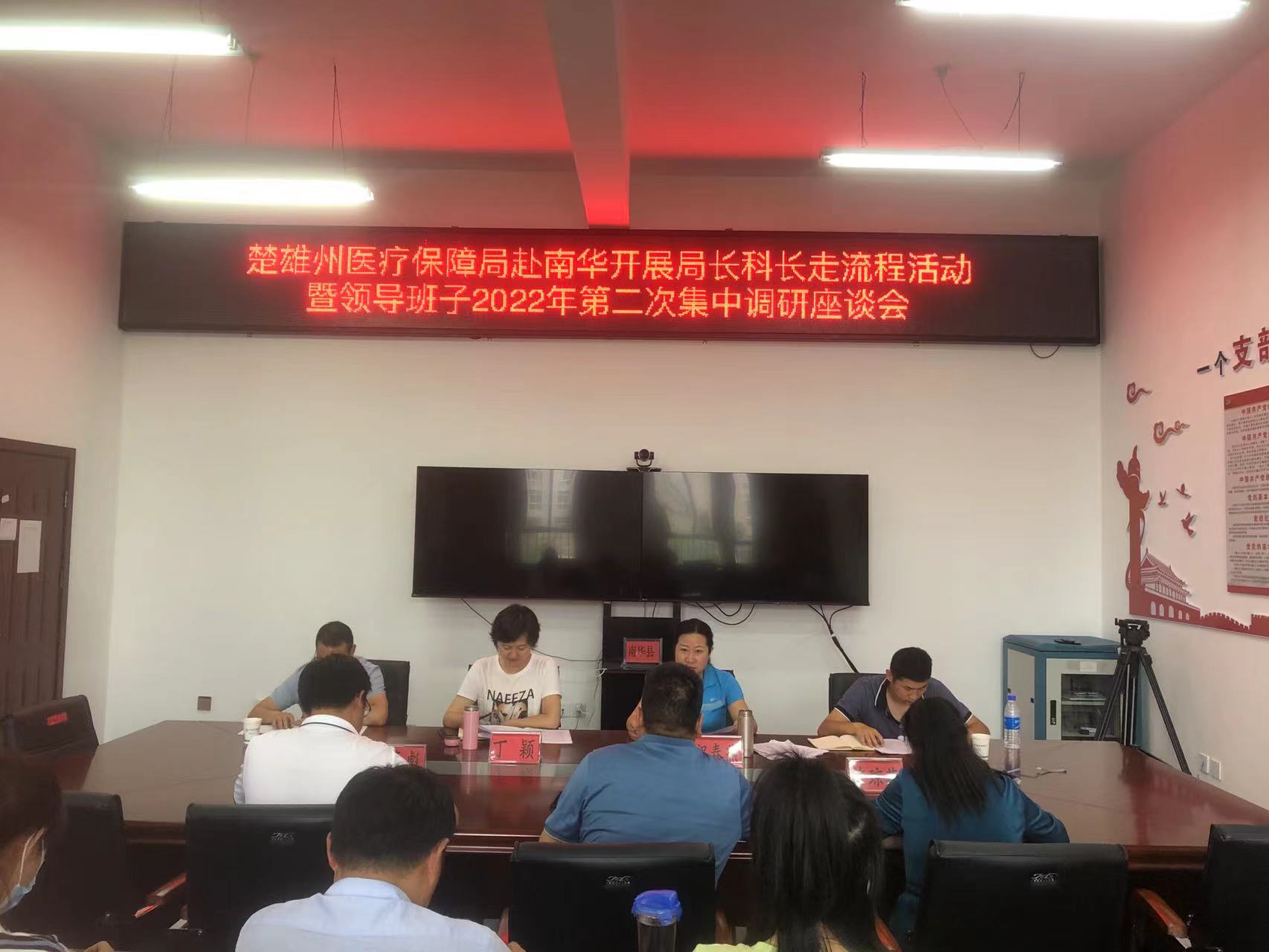 调研结束后,调研组在南华县医保局召开座谈会。会上听取县医保局工作情况汇报,祝局长对南华医保工作取得的成绩给予了充分肯定,并对今后南华医保工作高质量发展提出要求:一要毫不放松加强对医疗保障政策业务的学习,强化政策宣讲培训,营造全社会关心支持医疗保障工作的良好氛围;二要以作风革命效能革命为抓手,摸清底数,找准问题,抓实医疗保障领域涉及民生问题的整改,让老百姓真正得到实惠;三要规范“两定”医疗机构的管理,实行协议管理、依法管理,守好底,促进行业自律,加强自我管理;四要持续做好医保各项工作的落实,提升医保服务质量,强化医保基金运行分析,加大基金监管力度,确保基金运行安全,推进医疗保障事业高质量发展,以优异成绩迎接党的二十大胜利召开。