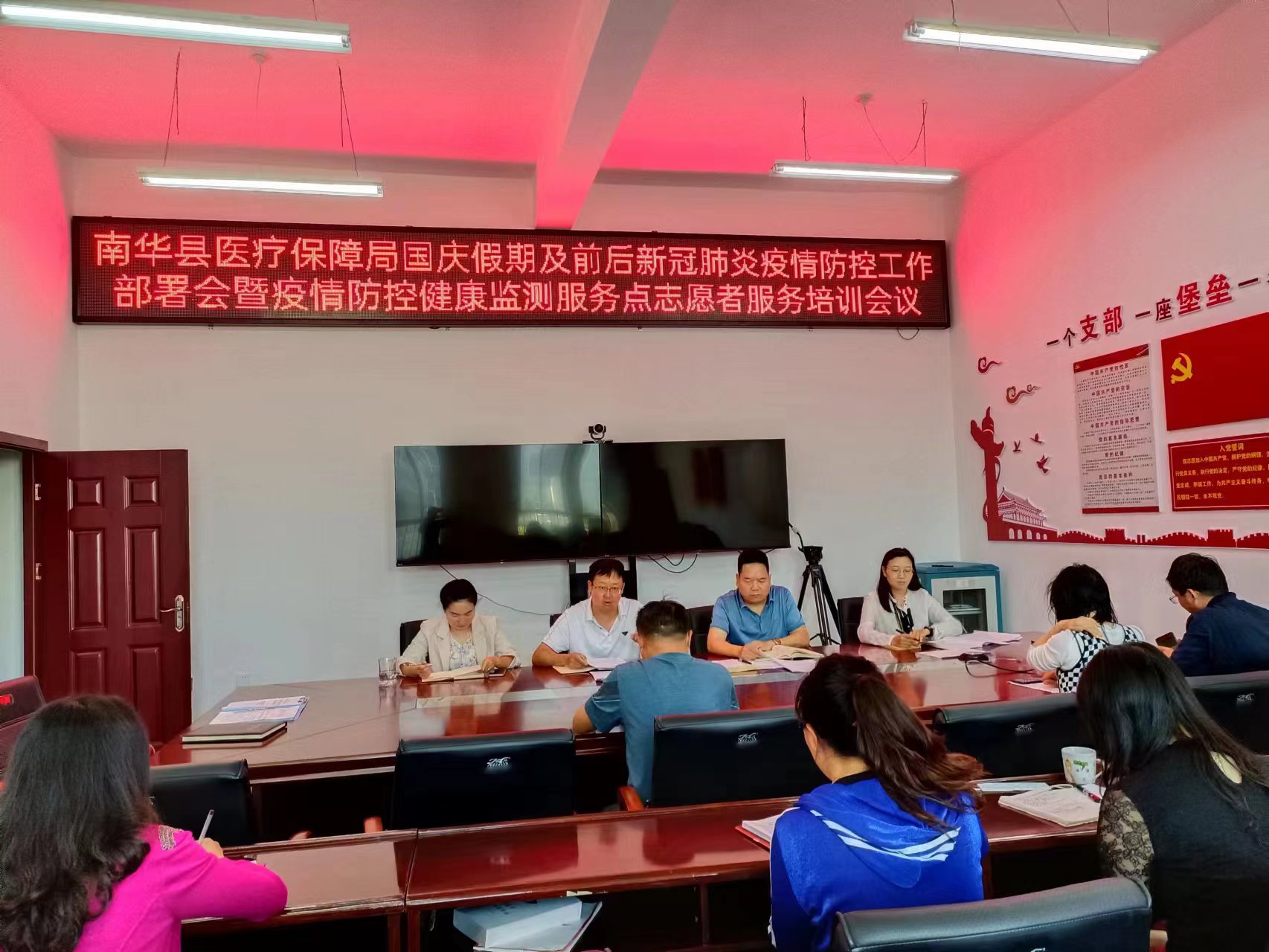 为深入贯彻习近平总书记关于疫情防控的重要指示,落实党中央、国务院决策部署,严格执行第九版防控方案,突出外防输入、人员有序流动、重点场所的防控,立足于早、立足于防,早发现、快处置、防外溢,牢牢守住不发生规模性疫情的底线,高效统筹疫情防控和经济社会发展,落实好“疫情要防住、经济要稳住、发展要安全”的要求,以实际行动迎接党的二十大胜利召开。2022年9月19日上午,南华县医疗保障局召开国庆假期及前后新冠肺炎疫情防控工作部署会暨疫情防控健康监测服务点志愿者服务工作培训会议。